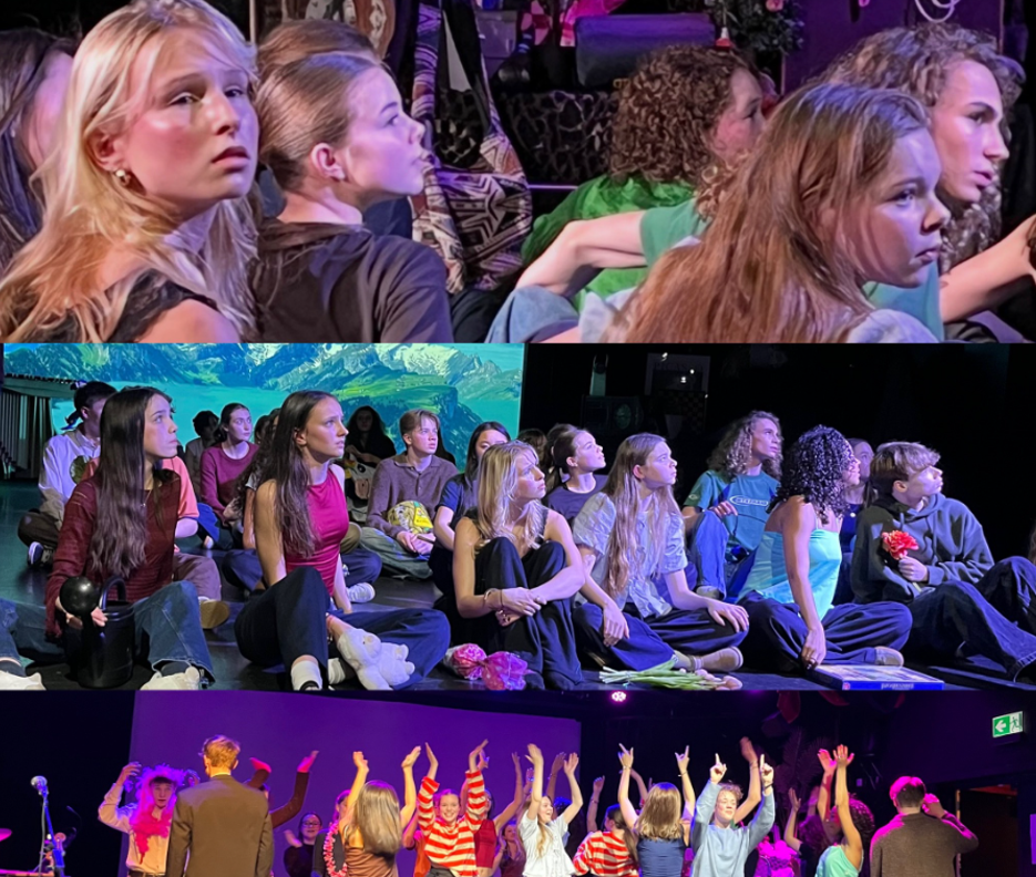 Dit jaar was het een extra uitdaging: het vierde leerjaar is groot, en meer dan veertig leerlingen kregen de regie over twee voorstellingen in een beperkte ruimte. Een opgave die, zoals tijdens de avond al werd opgemerkt, niet eenvoudig is: “Doe het maar eens, meer dan 40 pubers een week opsluiten in een te klein theater, ze de regie geven, en ervoor zorgen dat er vrijdag twee voorstellingen klaar staan…”